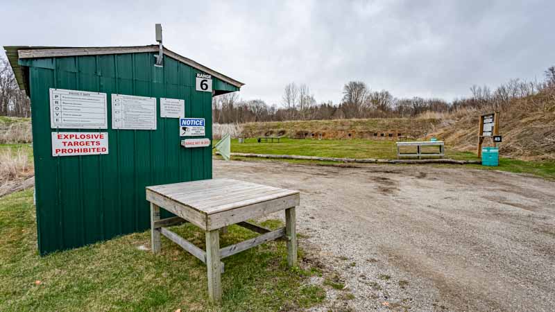 - 12 shooting stations with target stands/berms at 50, 100 meters.